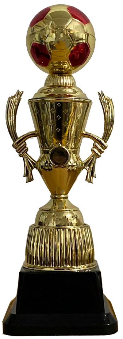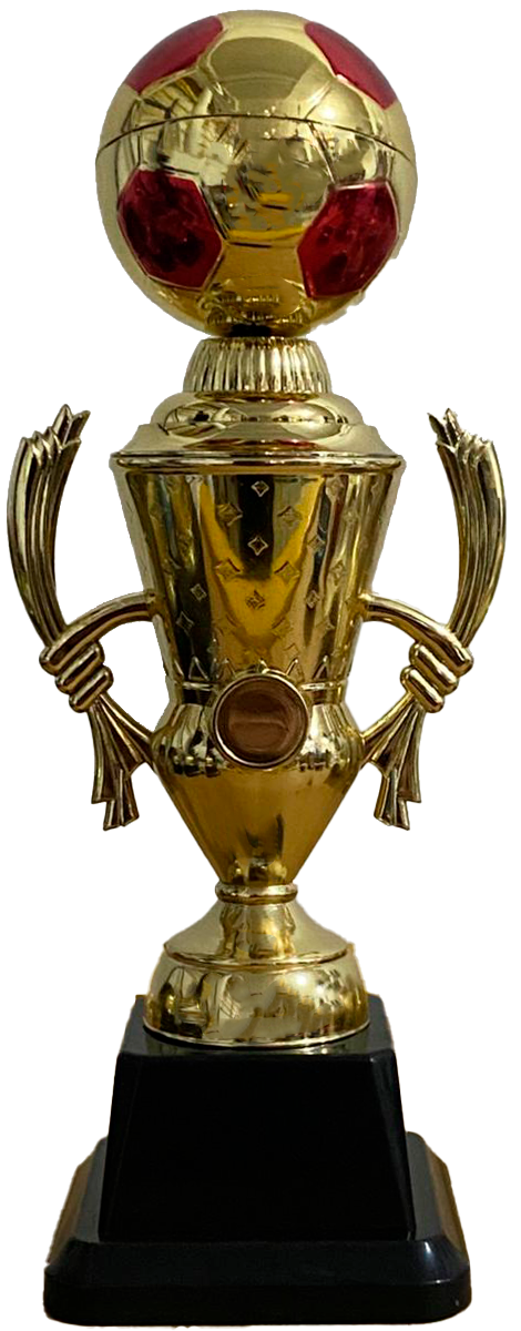 Plastic golden trophy cup with ball, ideal for soccer awards and recognition