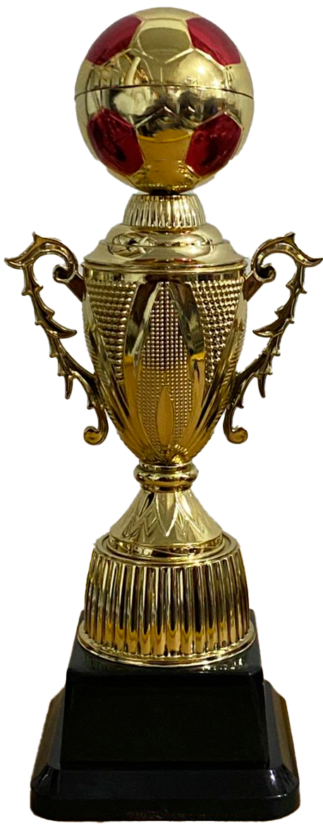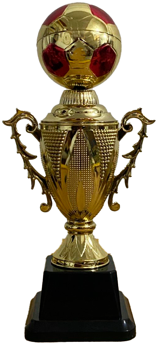 Plastic golden trophy cup with ball, ideal for soccer awards and recognition