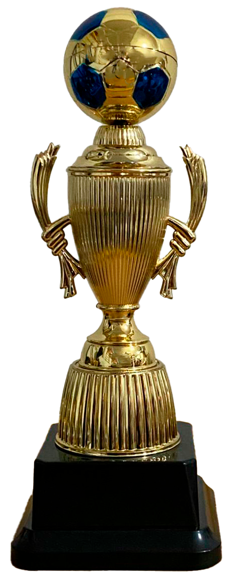 Plastic golden trophy cup with ball, ideal for soccer awards and recognition